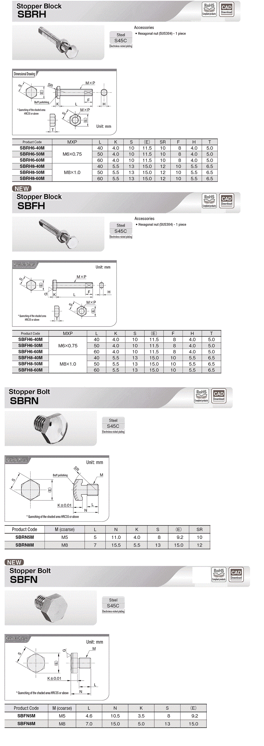 The surface of the head is hardened to withstand impact. 1 hex nut (SUS304) is included as an accessory.