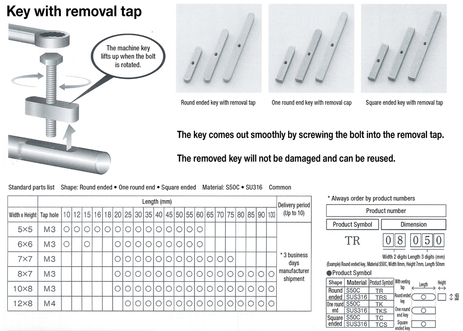 SEIKI Machine Key Series with Release Tap (JIS B 1301)