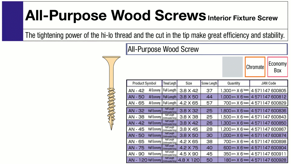 These long screws provide a high level of tightening and as the tips can be cut off, they are highly efficient and stable.
