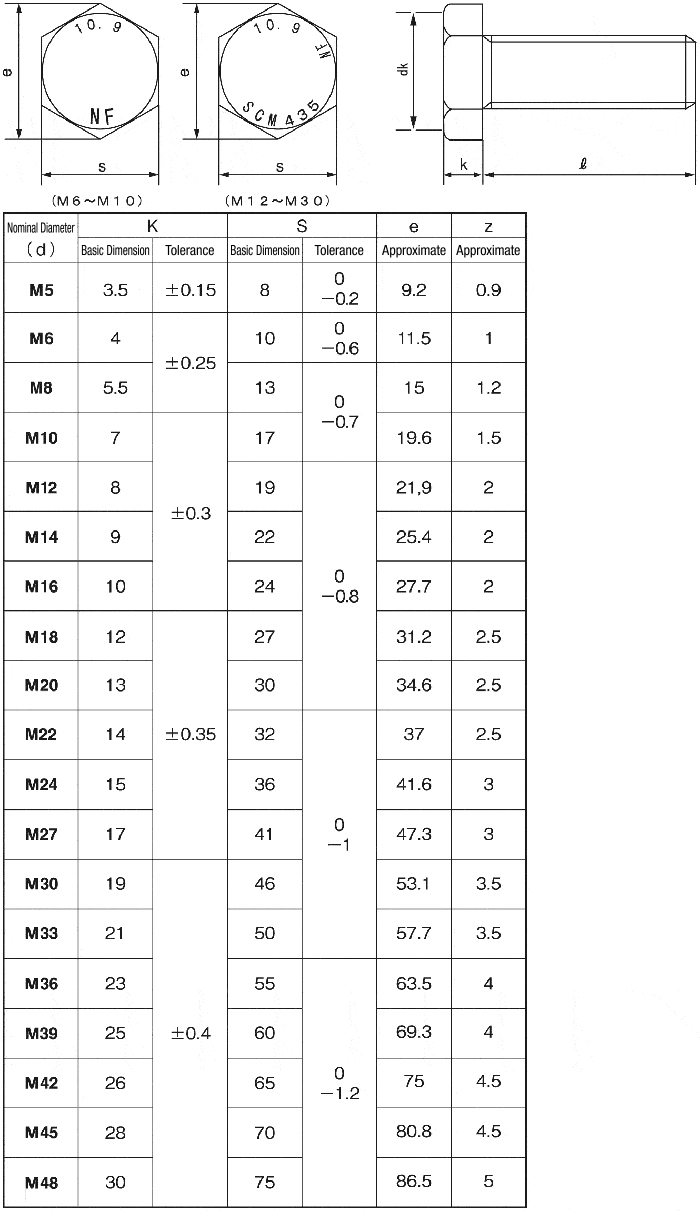 Strength Classification 10.9 Hex Bolt, Fully Threaded