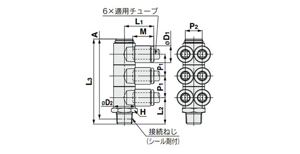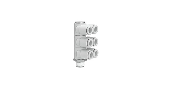 ・ Used for 6-branch piping in the direction perpendicular from the female thread section. 3 individual tubes can be attached in any direction.