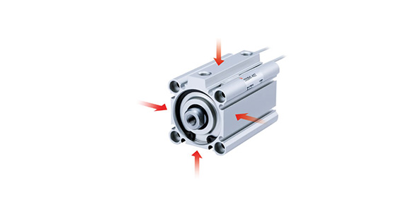 A space-saving cylinder designed with a short overall length. Helps to make jigs and equipment more compact.