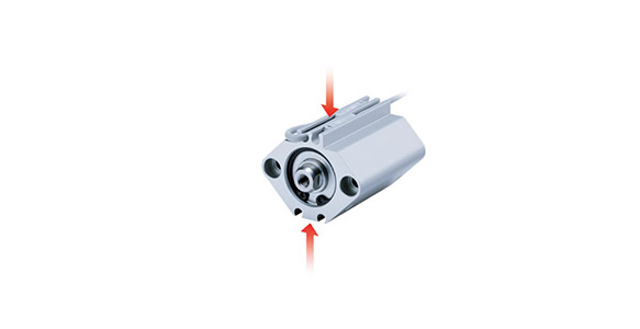Auto switches can be mounted at any position on the 4 surfaces to best match the installation conditions (ø12 to ø25 mm [internal diameter]: 2 surfaces). Improved design flexibility.