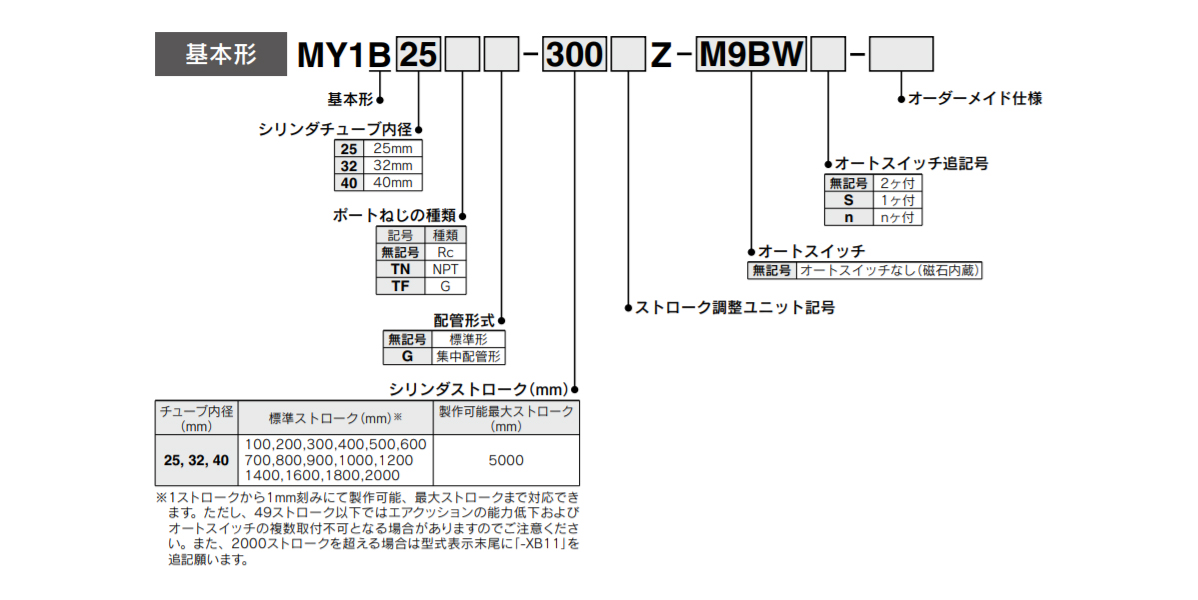 Mechanical Joint Type Rodless Cylinder, Basic Type, MY1B-Z Series Specifications