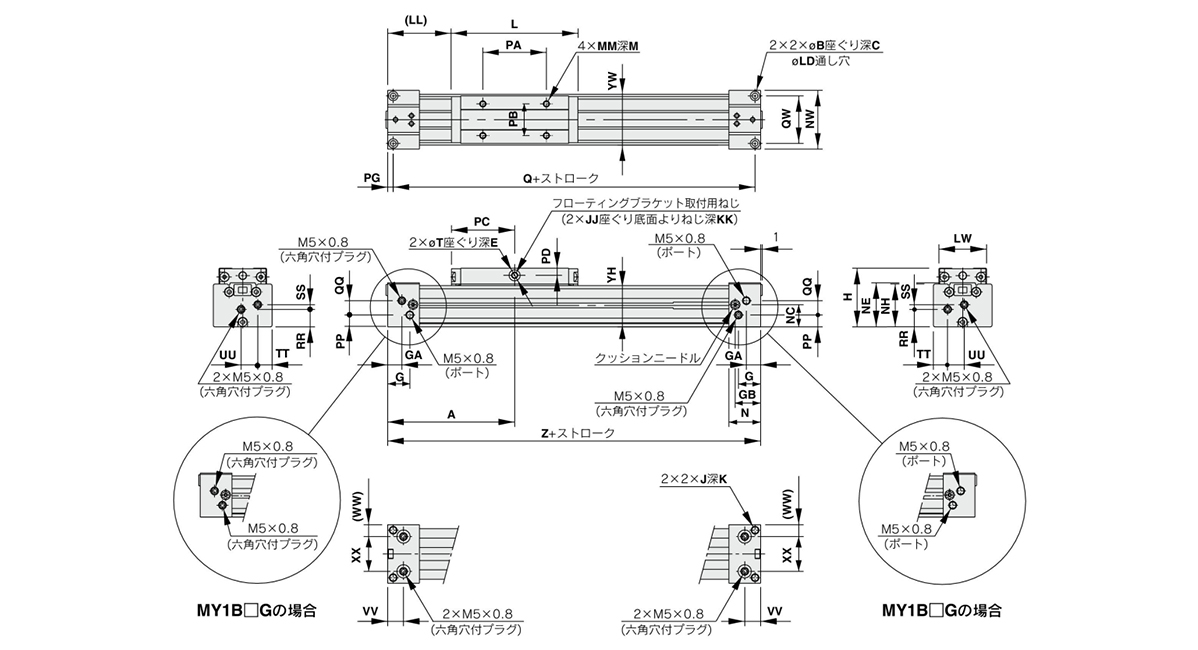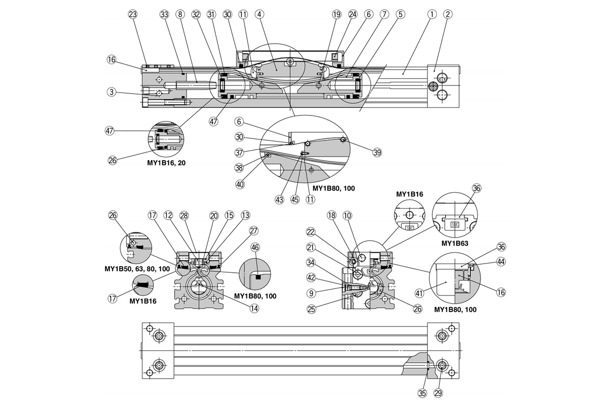 Details of Mechanical Joint Type Rodless Cylinder, Basic Type MY1B Series