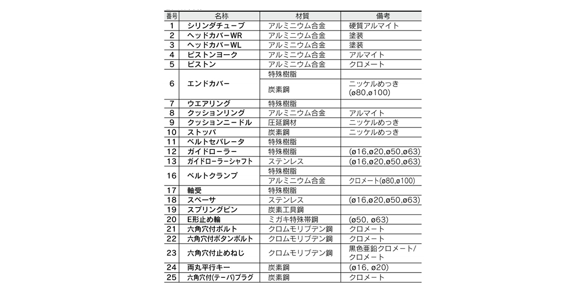 Image 1 for components parts table of MY1B16, MY1B20, MY1B50 to MY1B100 components parts table