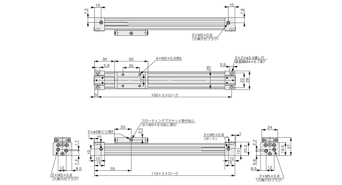 | Stroke Length Tolerance | 1,000 or less (0~+1.8) 1,001 to 3,000 (0~+2.8) | 2,700 or less (0~+1.8) 2,701 to 5,000 (0~+2.8) | ||||||