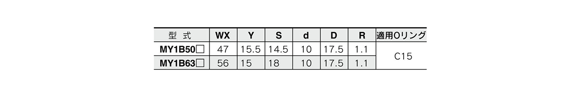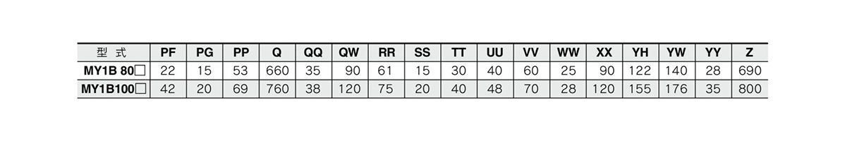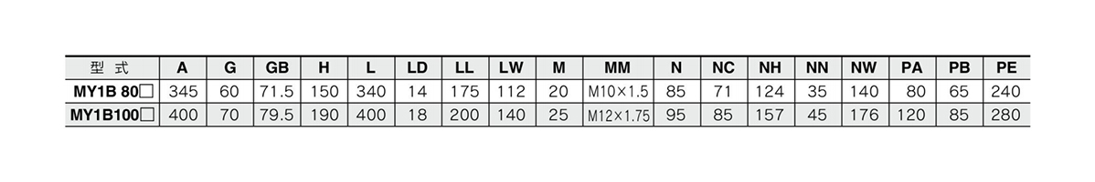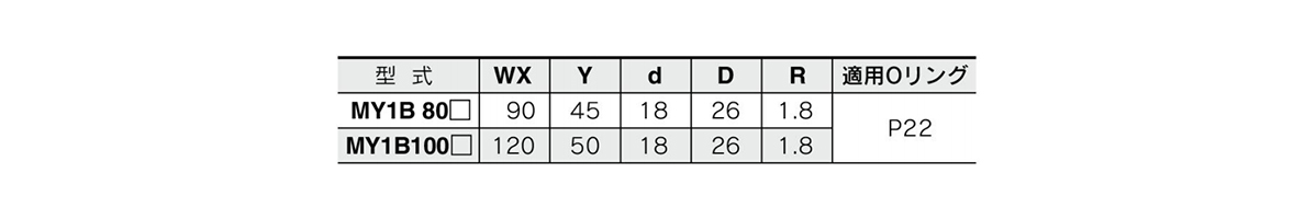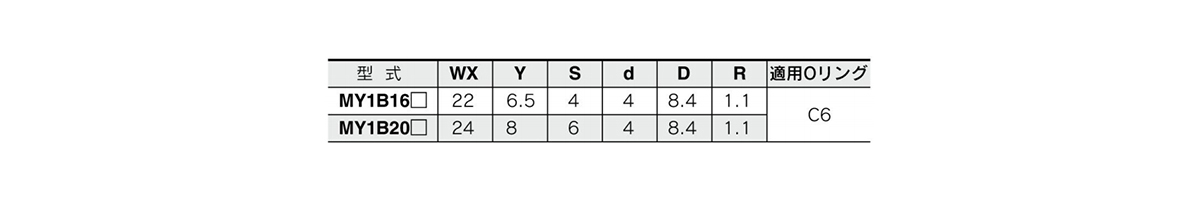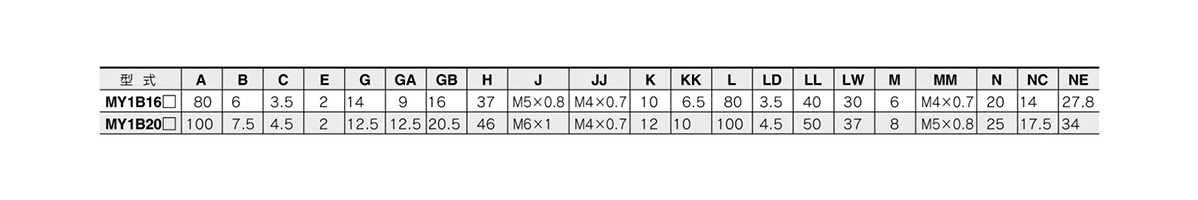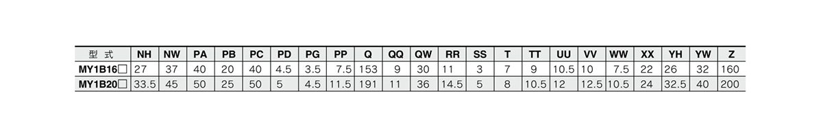 Image 1 of dimensions table for MY1B16□/MY1B1620□
