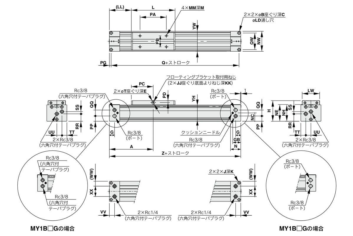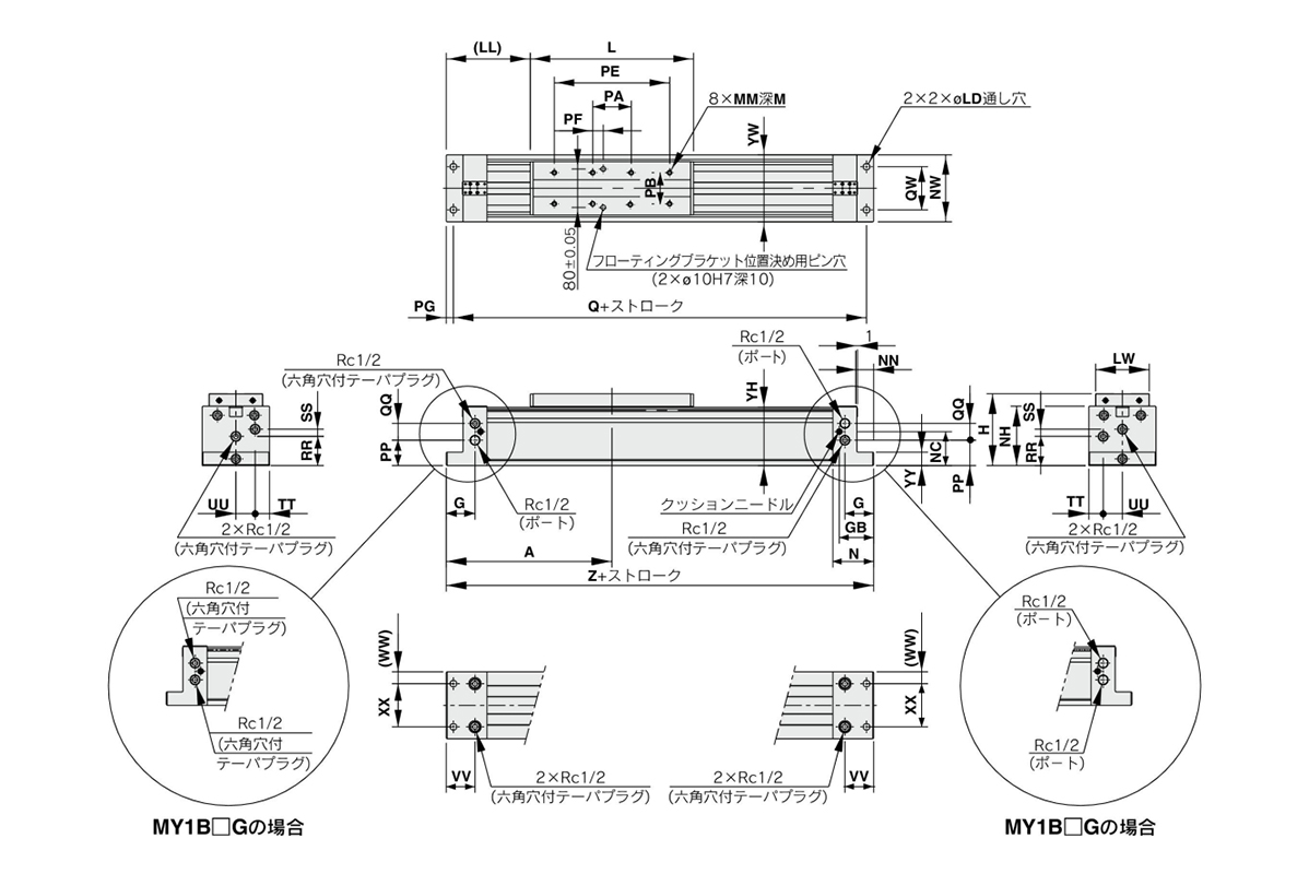 Dimensional drawing of MY1B80□/MY1B100□-Stroke