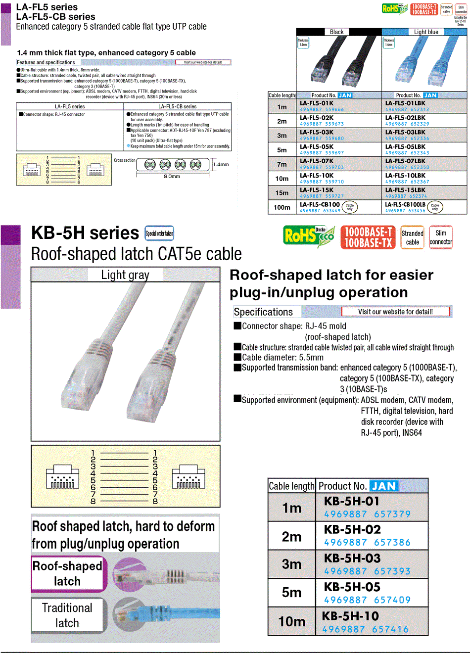 ・1.4 mm thickness flat type, enhanced category 5 cable.