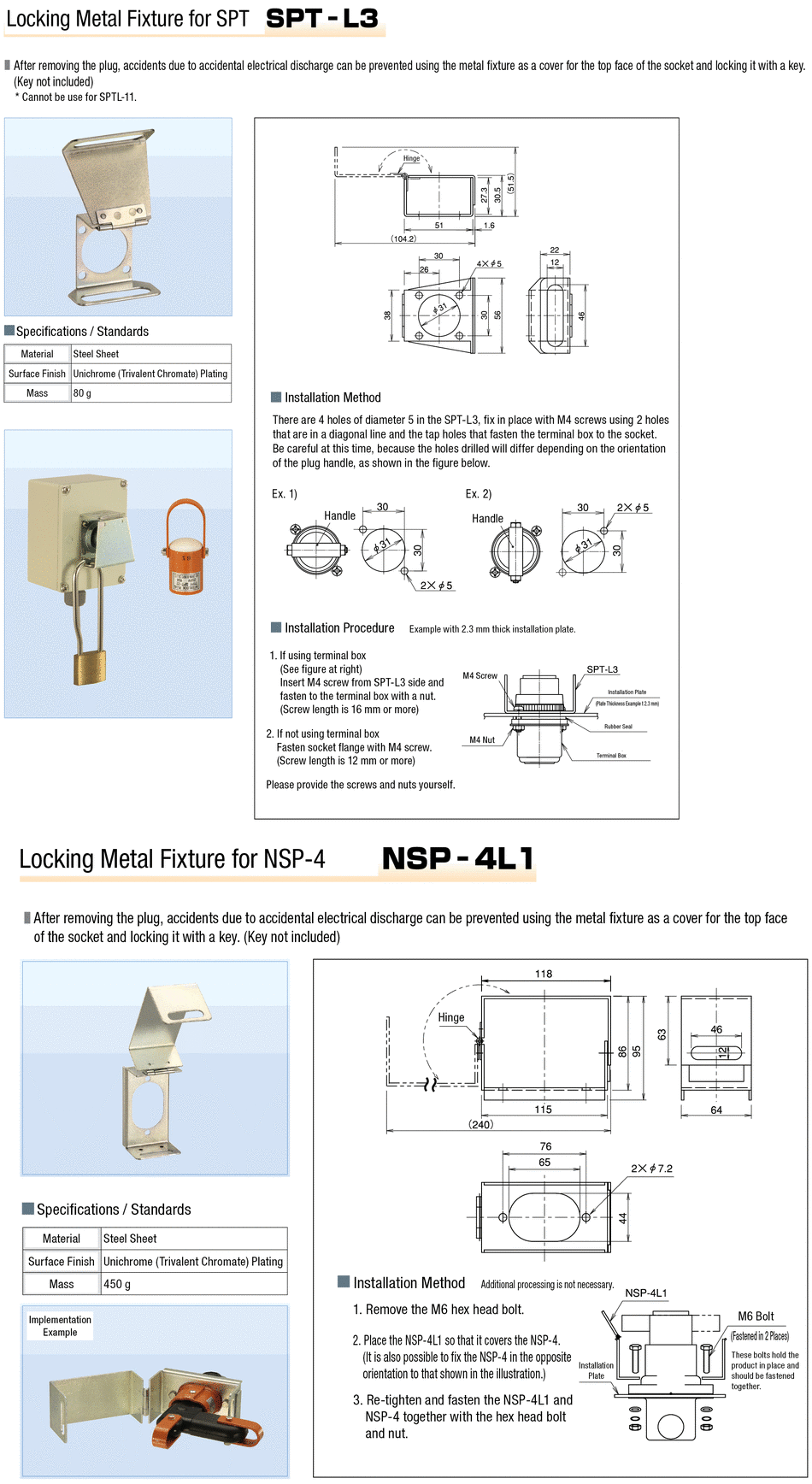 · The locking metal fitting places a lid on a socket top and locks it to prevent accidents by wrong electrification.