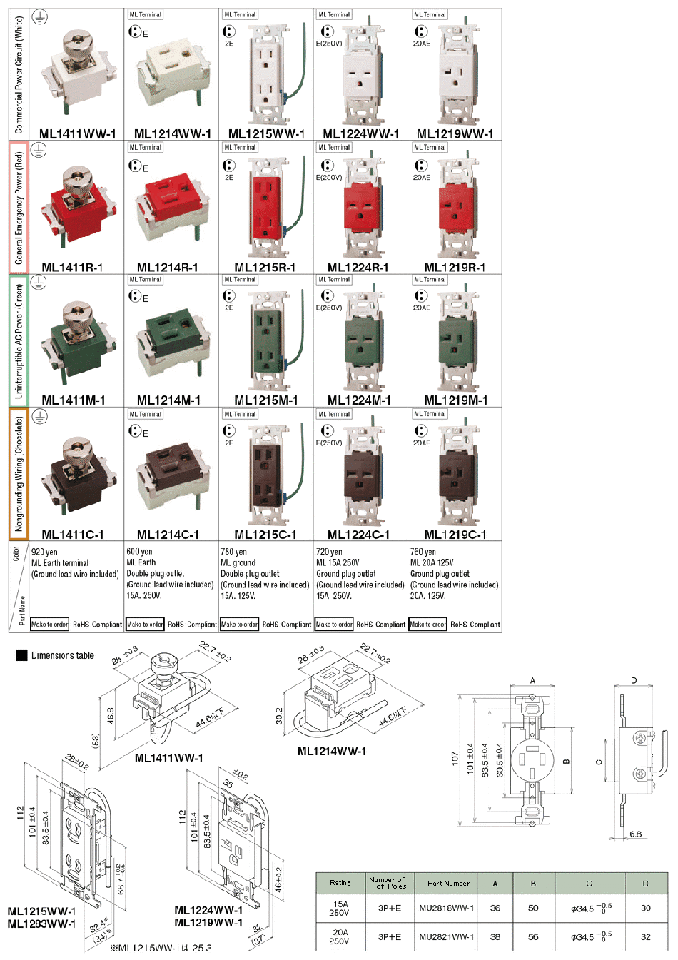 · Separating by color according to the power supply type of general wiring equipment is recommended for medical facilities