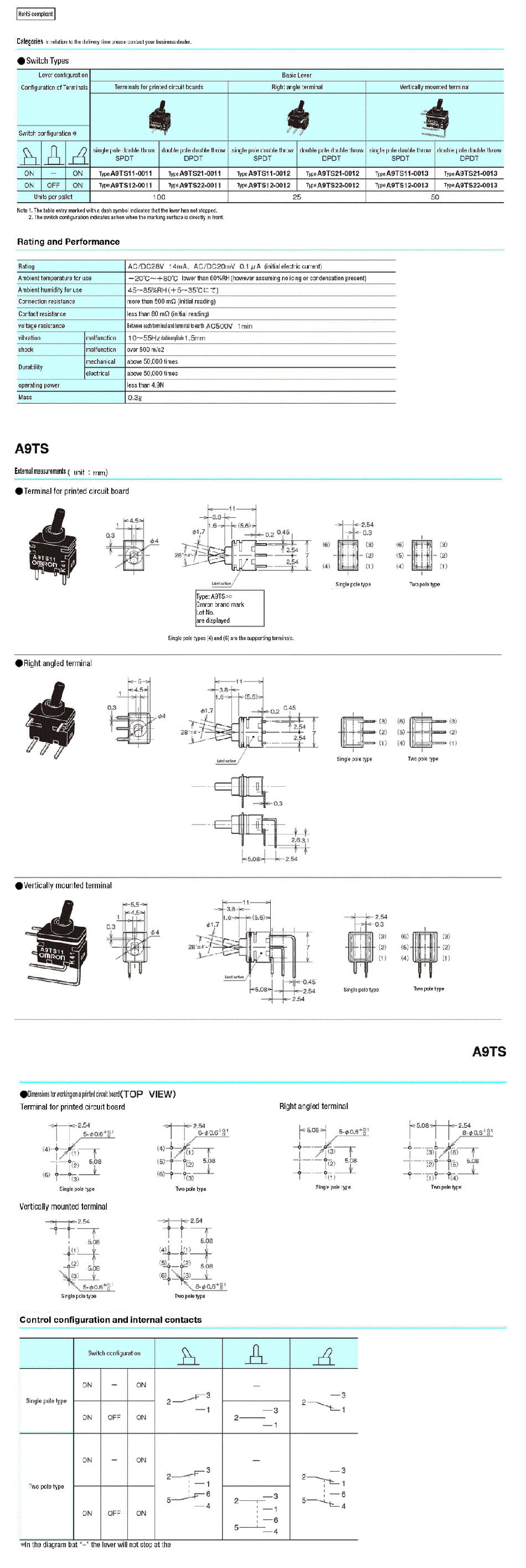 Extremely Small Toggle Switch A9TS