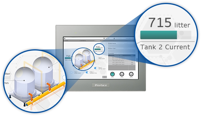 Pro-face connectivity. User-friendly protocols allowing you to connect your devices with ease via multiple interfaces and connect OT to IT with OPC-UA server. Remote Visualization on PC or Tablet / SmartPhone with Web Viewer. | ![]() |