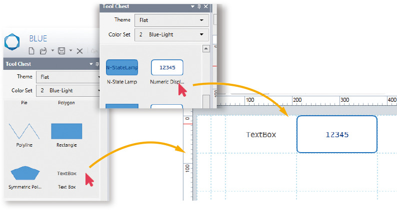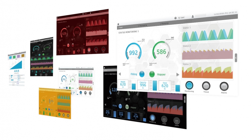 One source, multiple ways to present. Use themes to easily change color set according to a person, place, or situation. => Use themes to easily change color set according to a person, place, or situation. And, the creation of portrait screens is supported. This feature widely satisfies the needs of manufacturers that adopt portrait scaling cases, such as screens using vertical scrolling a lot and screens requiring lots of operation switches and a ten-key pad at the bottom. It also helps in narrow width limitation design where space is a constraint. | ![]() |