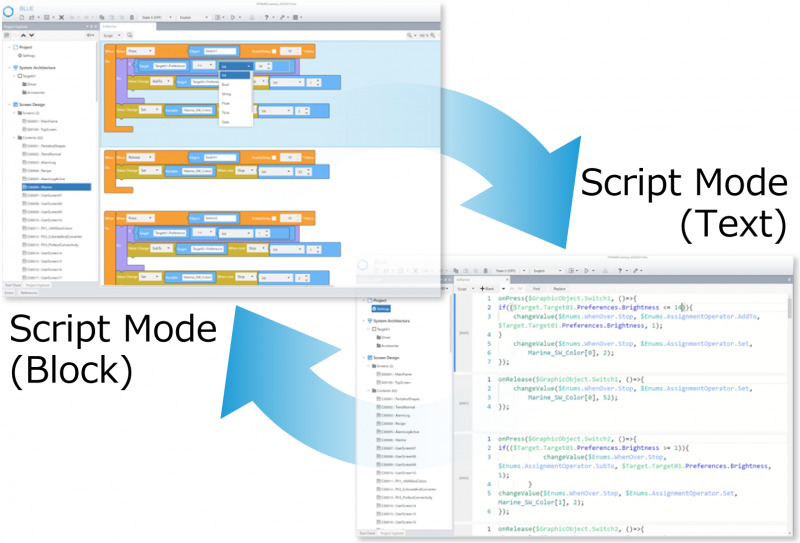 Flexible Scripting. Block Script makes visual programming possible. Software V3.3 or later Script mode (Text) Better performance to manage large scripts easier to cut and copy segments of code. Able to see more sections of code compared to blockly presentation | ![]() |