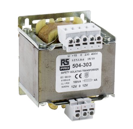 RS PRO 100VA Isolating Transformer, 230V AC Primary 1 x, ±12V AC Secondary