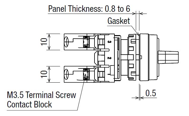 • Space-saving, 10mm thick contact blocks. Removable operator.