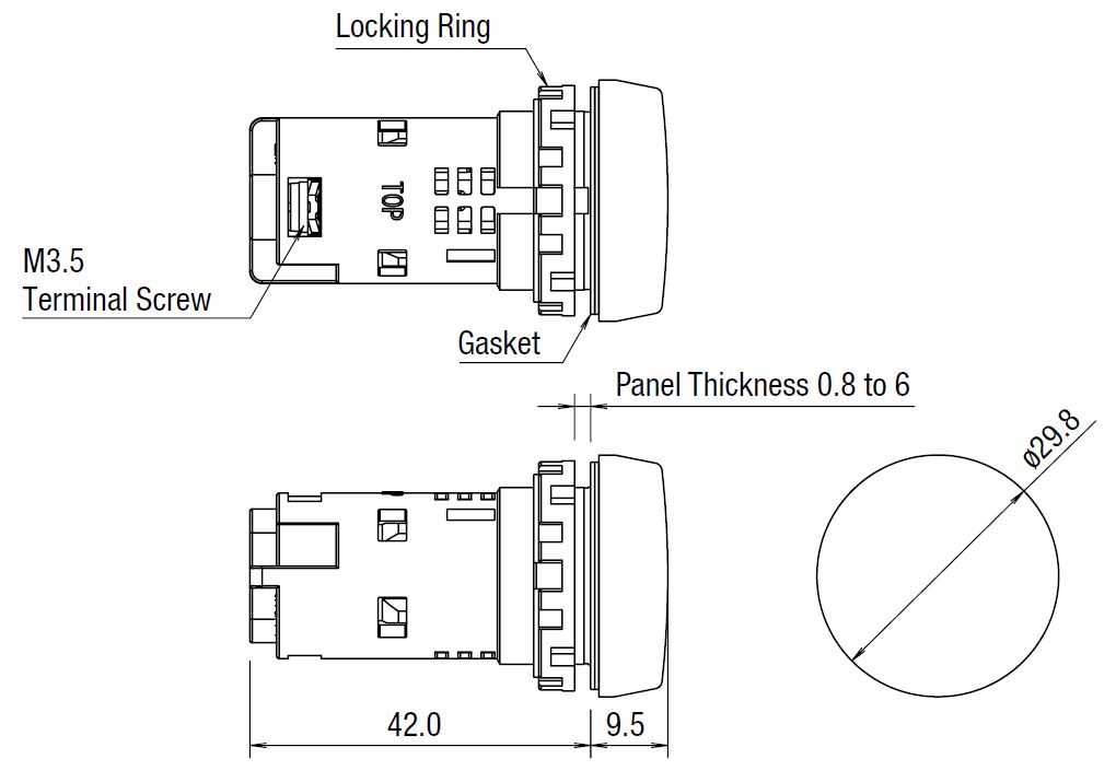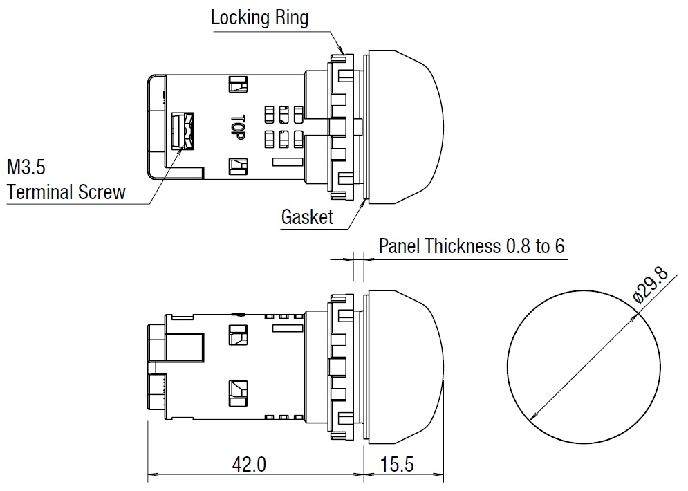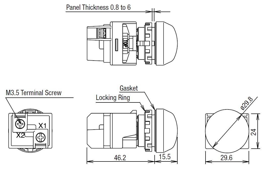 • Metal bezel, unibody pilot lights, and key selector switches available.