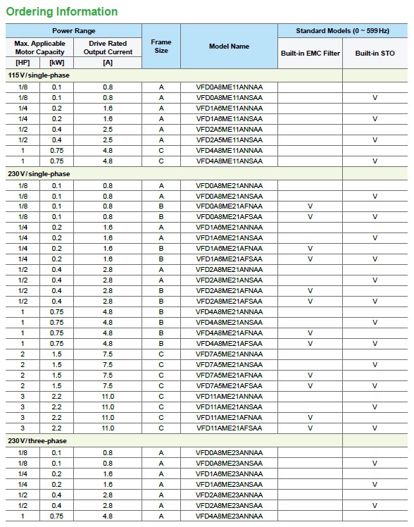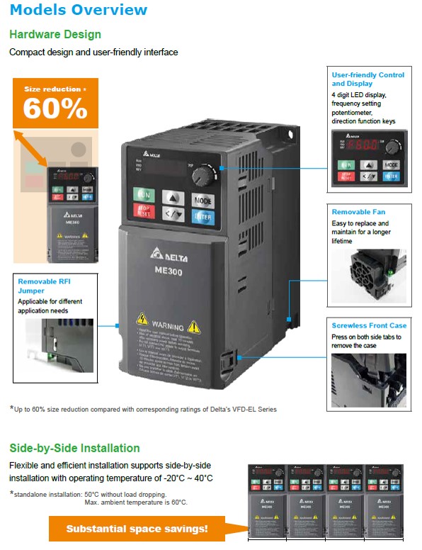 Delta Inverter, ME300 Series (Basic Compact Drive)