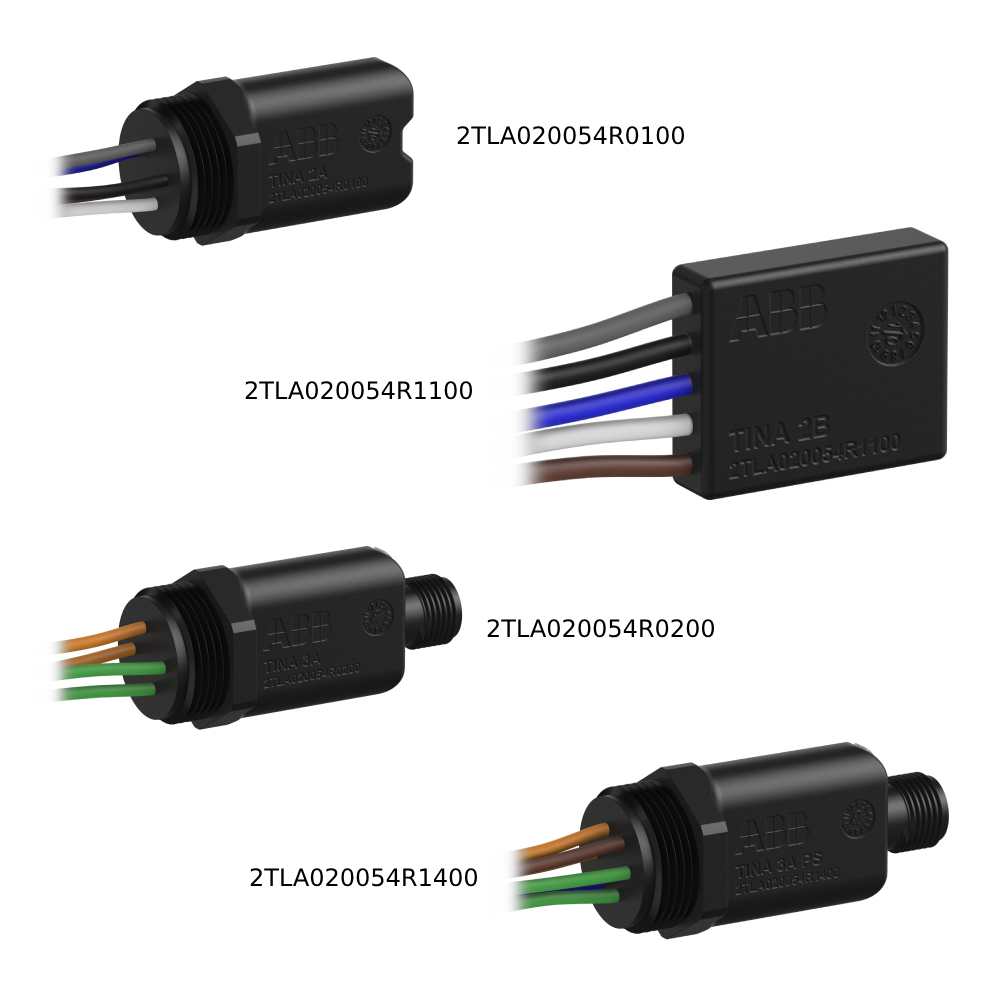 The Tina devices adapt the DYNlink signals from Pluto to safety components with mechanical contacts, such as E-stops, switches and light beams/curtains with dual outputs. Tina is available in several versions depending on the type of safety component that is connected to the DYNlink solution. Also available is connector blocks and a blind plug.