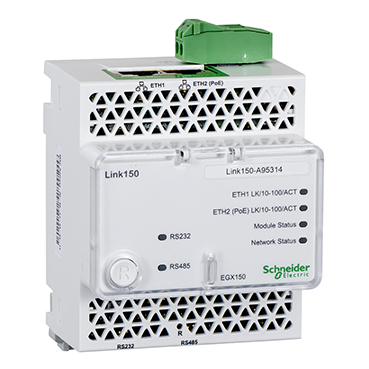 This device is a gateway that provides reliable Ethernet connectivity in most applications, from single building to multi-site enterprises. Part of EcoStruxure, the web service provide user interface for reporting and information. They deliver serial-to-Ethernet connectivity. It received IEC60950, UL61010-2-201 and UL60950 certification. Can be supplied by a 24VDC source or even a Power of Ethernet Class 3 15 Watt. The gateway can be DIN rail mounted in a modular enclosure. Product dimensions are as follows: width 105 millimetres, depth 71 millimetres, height 72 millimetres and product weight 175 g.