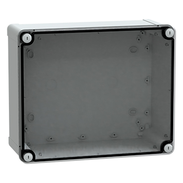 The box has a class II electrical insulation that prevents electric shocks and allows the building of totally insulated solutions. It is also resistant to fire up to 650°C in accordance with IEC 60695-2-11 standard. The box offers high protection against dust and water with an IP66 rating (NEMA 4,4X) and is impact resistant with an IK07 rating (IEC 62262). It can be stored in ambient air temperatures ranging from -15 to 40°C and used in ambient air temperature ranging from -25 to 60 °C without affecting its performance
