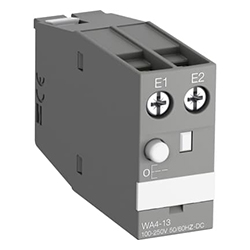 The WA4 mechanical latching unit for AF09 ... AF96 contactors and NF contactor relays ensures that the contactor or contactor relay remains switched on even if there is a lack or a failure of voltage. Standard contactors can be easily converted into compact latched contactors.The WA4 block contains a mechanical latching device with electromagnetic impulse unlatching (AC or DC) or manual unlatching.