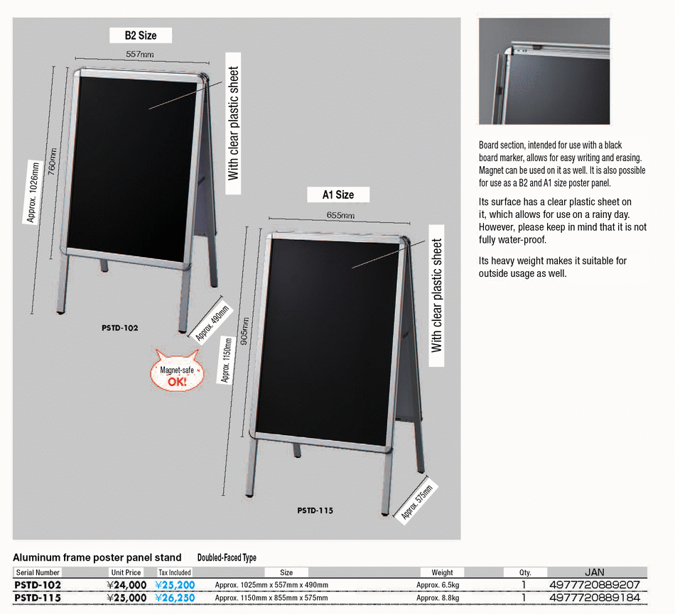 · The board part for a blackboard marker to freely write and delete can also be used with magnets. Also, it can be used as a poster panel for B2 and A1.