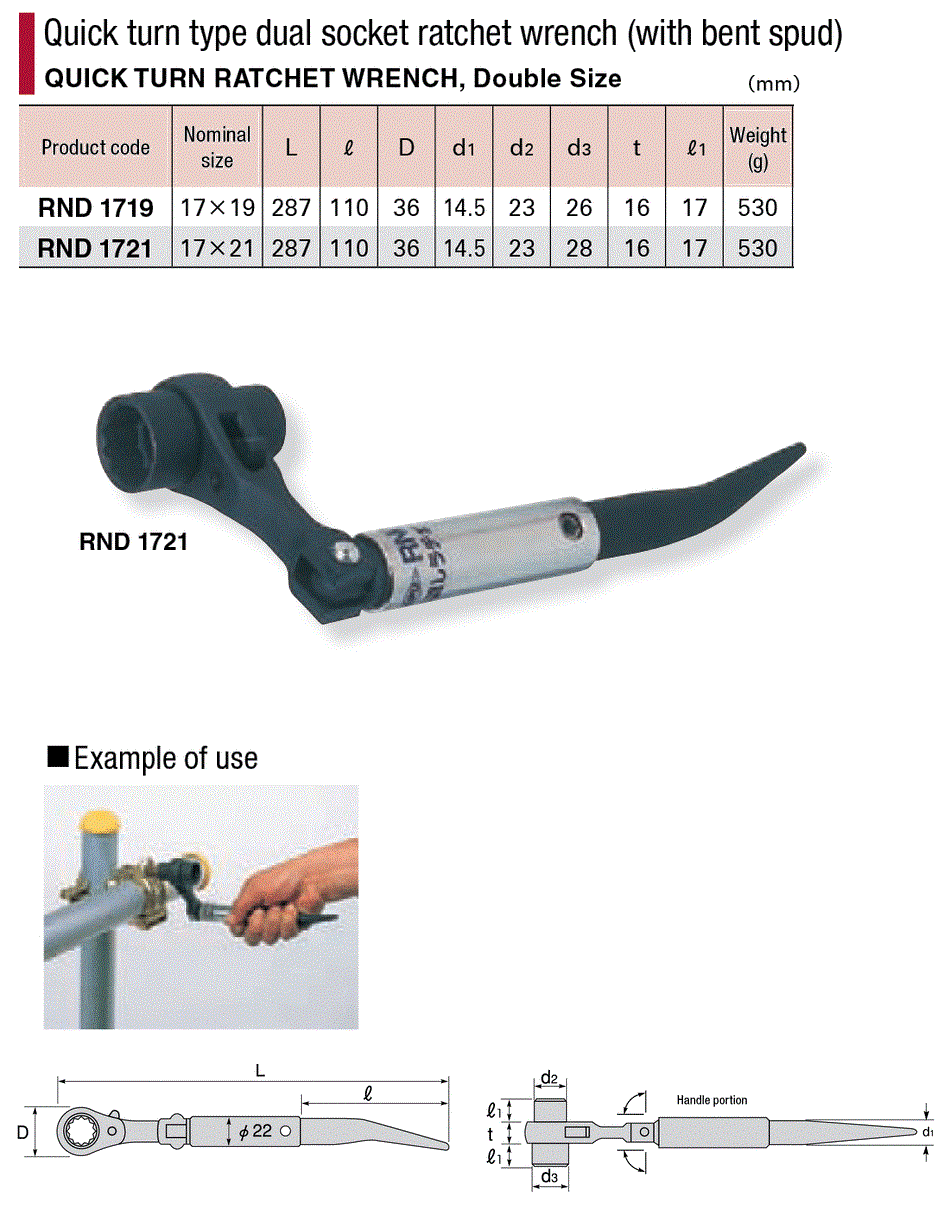 · The handle folds with a single-action and provides fast turning mechanism for bolts and nuts.