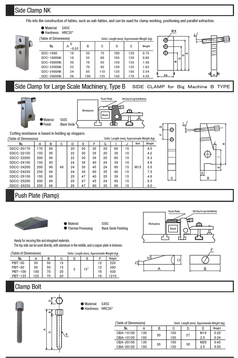 Can be inserted into grooves of sub-tables, etc., and used for positioning, correcting parallels, clamping work, and more