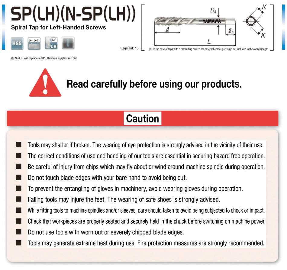 ■ The SP LH is a spiral flute tap for tapping lefthand thread blind holes.