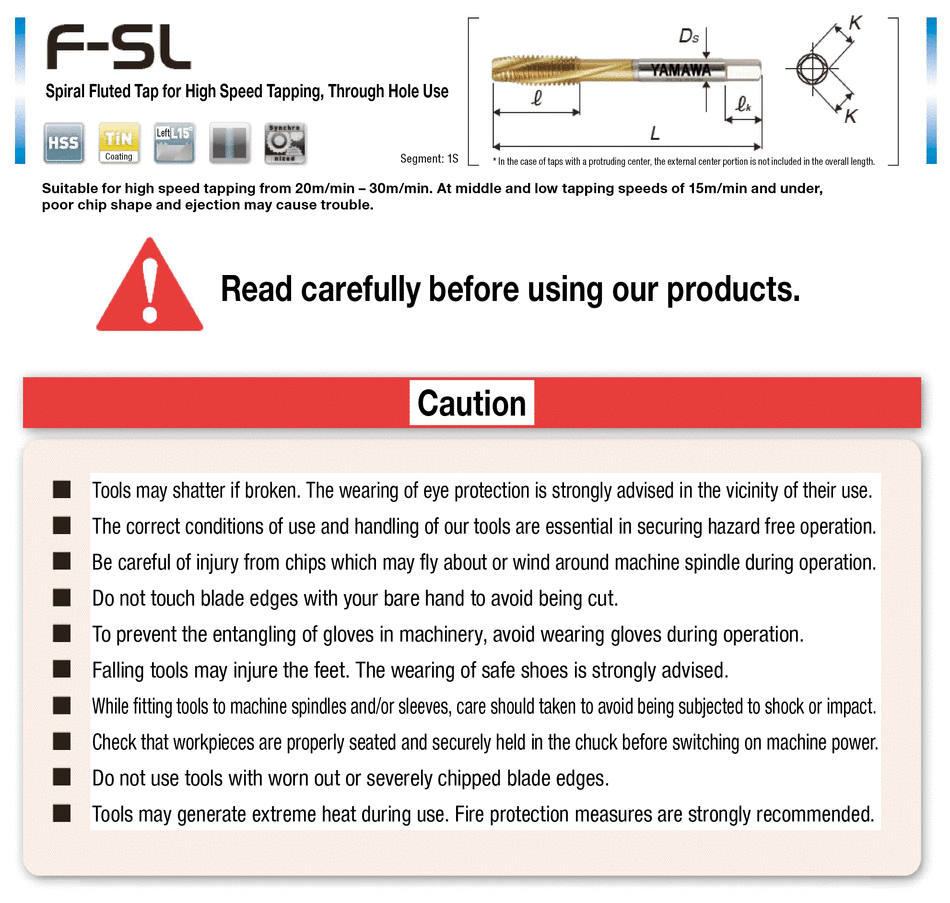 Spiral Fluted Taps for High Speed Tapping, Through Hole Use (with LH Spiral Flutes)_F-SL
