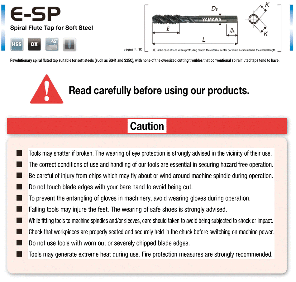 ■ The E-SP is suitable for tapping relatively soft work piece materialssuch as mild steel (SS41, S25C, etc.).