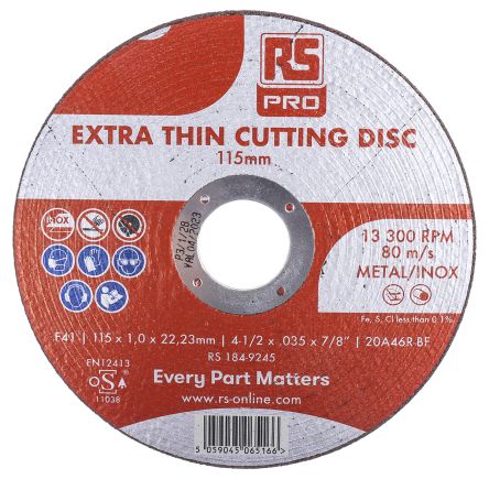 RS PRO Aluminium Oxide Cutting Disc, 115mm x 1mm Thick, P60 Grit, 10 in pack