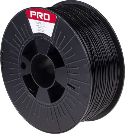 RS PRO 1.75mm Black ABS 3D Printer Filament, 1kg