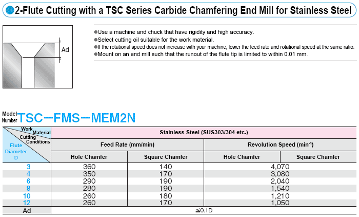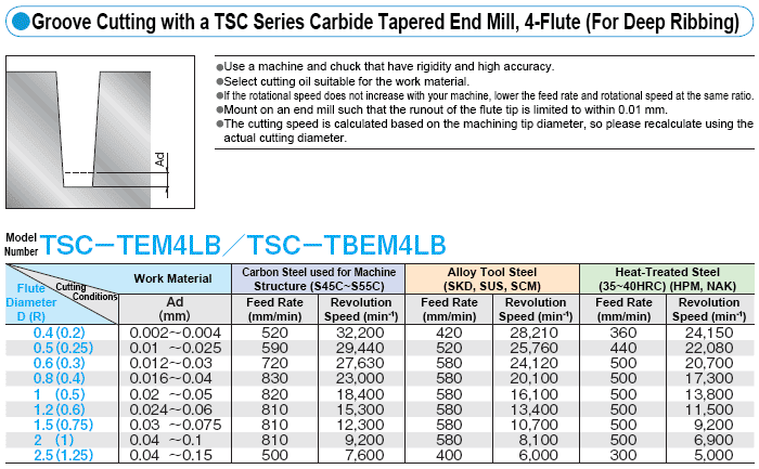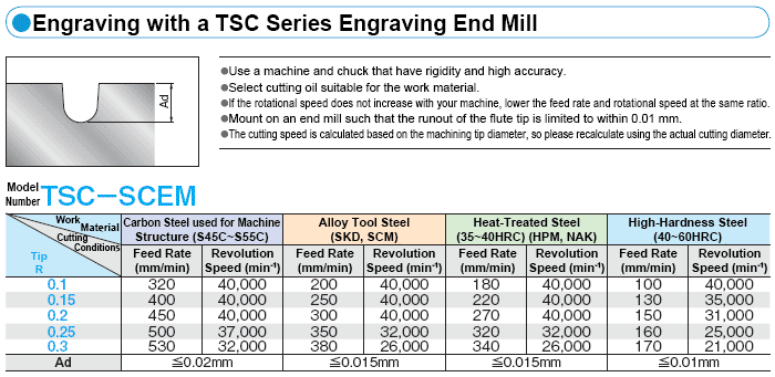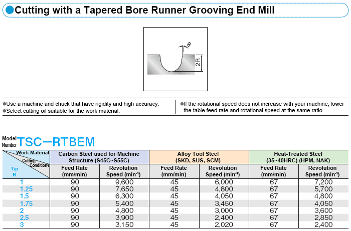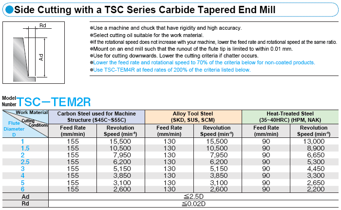 เงื่อนไขการตัดที่แนะนำสำหรับงานเทเปอร์และแกะสลัก
