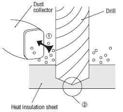 รูเจาะในแผ่นฉนวนอาจทำให้เกิดรอยแตกร้าว โปรดระมัดระวังที่รูพิทช์ เส้นผ่านศูนย์กลาง ฯลฯ