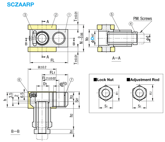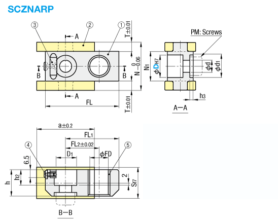 | SCZNARP | 12 | 11 | 5.5 | — | 16 | 10 | — | 30 | 17 | 44 | 31.5 | 20 | ⌀10 | -0.025 | 20 | 35 | 6.5 |