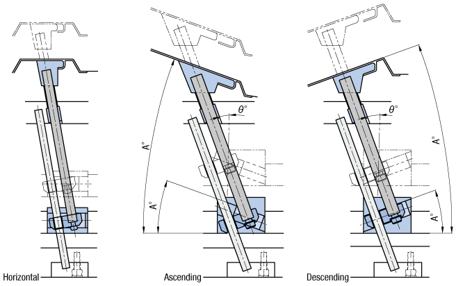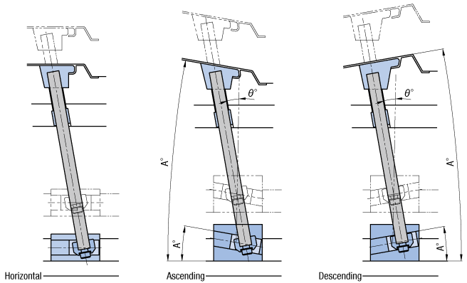 ■ คุณสมบัติของคันช่วยประเภท· เหมาะสำหรับ เหล็กฉาก ขาพิน แบบเอียงได้ ที่สูงชัน (สูงถึง 30°)