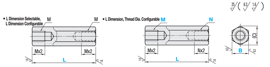 | มิติ L เลือกได้ | มิติ L แบบตั้งค่าได้ | มิติ L, เส้นผ่านศูนย์กลาง เกลียว แบบตั้งค่าได้ | ||