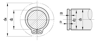 d4: เส้นผ่านศูนย์กลางนอกสูงสุดเมื่อใส่แหวนล็อคไว้ภายใน d1