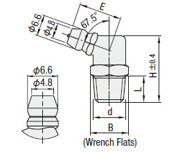 [คุณสมบัติ]· หัวอัดจาระบี ชนิด 67.5° [วัสดุ]SUS303 และทองเหลืองสำหรับตัดกลึงง่าย (C3604BD)
