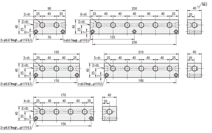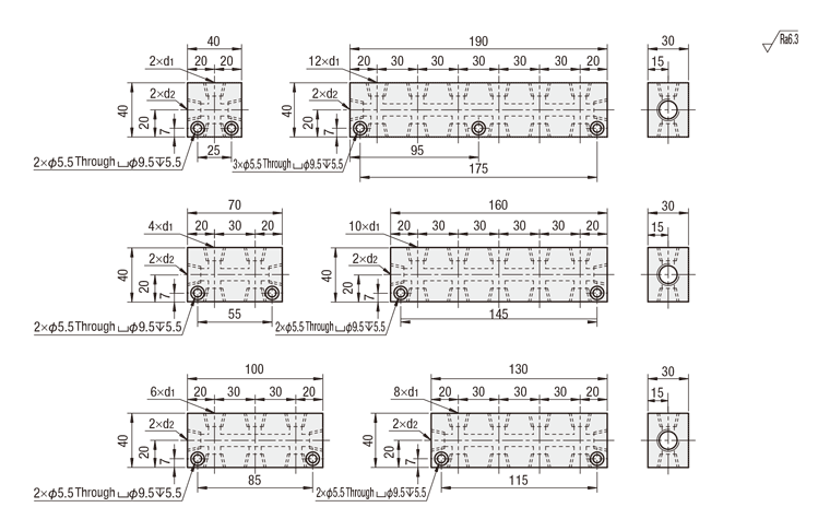 แมนิโฟลด์บล็อค - ระบบนิวเมติกส์ - รูทะลุด้านข้างและแนวตั้ง/ รูทะลุด้านข้าง รูด้านบน