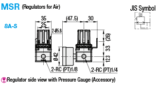 [คุณสมบัติ]· วาล์วลดความดัน ที่สามารถปรับ ความดัน ได้ · มาพร้อมกับ เกจวัดความดัน และ เหล็กยึด