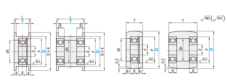 สายพานแบน Idlers-ชนิดหน้าแปลน/ แบบสวมทับกับชิ้นงาน (Crowned) / ความกว้าง L6-32
