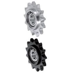 เนื่องจากมีการติดตั้งตลับลูกปืนคู่ เฟืองโซ่ไอดเลอร์ประเภทนี้สามารถทนต่อโหลดไฟฟ้าที่หนักกว่าแบบเดี่ยวได้ และเหมาะสำหรับการปรับความตึงบนด้านที่ถูกขับเคลื่อน
