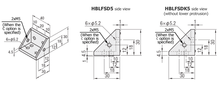 | รูยึดฝาครอบเพิ่มเติม | C | เพิ่มก๊อกเข้ากับขายึดเพื่อติดฝาครอบ (M5 สองด้าน) (สกรูยึด HCBM) | HBLFSD5 |