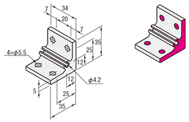 | เหล็กฉากแบบมีปุ่มยื่น | ・เหล็กฉากแบบมีปุ่มยื่นเป็นเหล็กฉาก 90 องศาที่ผลิตจากวัสดุ ADC12 ด้วยการหล่อขึ้นรูป โดยทั่วไปจะไม่ผ่านการชุบอโนไดซ์ และมีราคาถูกกว่าเหล็กฉากแบบอัดขึ้นรูปที่มีขนาดเท่ากัน ・ปุ่มยื่นทำหน้าที่เป็นตัวกันหมุนขณะขันยึด ช่วยให้ทำงานได้ง่ายขึ้น ・มีหลากหลายประเภทที่เพิ่มฟังก์ชันการใช้งานเพิ่มเติม |