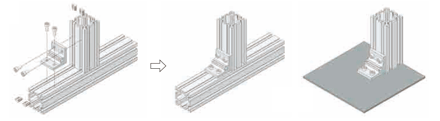 สินค้าที่มีร่อง 2 แถวสามารถเชื่อมต่อได้ด้วยเหล็กฉากเพียงตัวเดียว (ตัวอย่างเฟรมที่ใช้: HFS5-4040 )